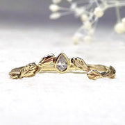 Inform when this item available Forest Leaves ring, with a pear 3mm x 2mm Diamond, 9ct yellow gold